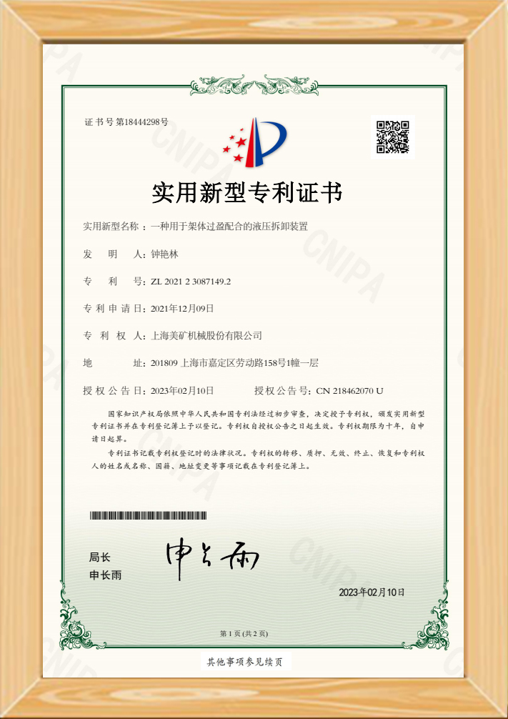 • 一種用于架體過盈配合的液壓拆卸裝置專利證書